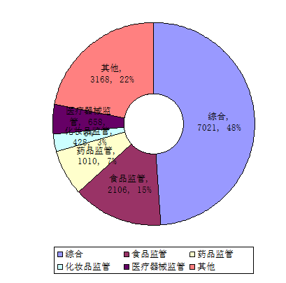 2016年行政机构到岗人员分布图 从所在部门看,综合在岗人员7021人,食品监管在岗人员2106人,药品监管在岗人员1010人,化妆品监管在岗人员428人,AG百家乐娱乐监管在岗人员658人,其他岗位人员3168人。