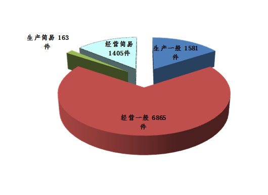 2016年全省保健食品案件来源分布图 从主要违法主体看,以流通单位为主,共12件,其他主体6件。 从案值划分看5万元以下的案件115件,5-20万元的案件1件,20-50万元的1件。 三、保健食品生产、经营企业日常监管情况(详见附表17) 2016年全省各级监管机构共检查保健食品生产企业733家次,检查保健食品品种1379种次,抽检保健食品品种295批次,检出不合格4种次,发现标签标识、说明书与批准内容不一致的4家。 检查保健食品经营企业53435家次,检查企业次数73749家次,抽检保健食品品种批次5920批次,检出不合格保健食品品种76批次,发现标签标识、说明书与批准内容不一致的96家。 第四部分 药品监督管理 一、药品行政受理情况 (一)药品生产企业许可情况(详见附表18) 截至2016年底,全省共核发药品生产许可证412张,原料药和制剂219家,生产原料药企业181家,生产化学药企业181家,生产中药企业(不含饮片)130家,生产中药企业(含饮片)278家。 全省药品生产企业按地区划分,成都:190家;德阳:41家;绵阳:23家;阿坝州:3家;巴中市:4家;达州市:6家;甘孜州:2家;广安市:9家;广元市:7家;乐山市:20家;凉山州:6家;泸州市:15家;眉山市:30家;南充市:20家;内江市:15家;攀枝花市:2家;遂宁市:8家;雅安市:5家;宜宾市:6家;资阳市:13家;自贡市:8家。