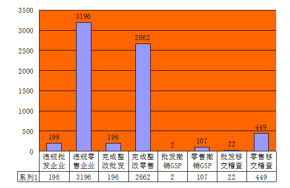 全省各地药品生产监管情况分布图 (二)药品经营企业日常监管情况(详见附表8) 2017年一季度,全省共检查药品经营批发企业1347家次,零售企业25778家次。存在违法违规的批发企业198家次,零售企业3196批次。完成整改的批发经营企业196家次,完成整改的零售企业2662家次。批发企业撤销GSP证书2张,零售企业撤销GSP证书107张。批发企业移交稽查部门立案查处22件,零售企业移交稽查部门立案查处449件。