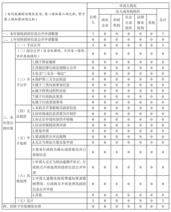 三、收到和处理AG百家乐申请情况 四、AG百家乐行政复议、行政诉讼情况 五、存在的主要问题及改进情况 2022年,AG百家乐政务公开工作有力有序推进,但仍存在一些薄弱环节。一是思想认识还有待提高,存在主动公开不及时的现象。二是栏目更新还有待加强,紧盯时政动态、重点工作设置新栏目还不够。三是方式方法还有待完善,在宣传报道、政策解读等方面多以文字、图片为主,内容和形式仍需进一步丰富。 下一步,我局将加大政务公开力度,定期对内容是否及时更新、信息是否准确、要素是否齐全等情况开展自查,做到安全规范高质量运行。加强AG百家乐平台建设,丰富公开渠道,提升服务水平,及时准确传递药品监管信息,保障人民群众知情权。 六、其他需要报告的事项 2022年,我局在办理依申请公开工作中,未向申请人收取任何费用。 |
